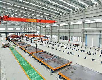 图为成都建工集团位于青白江区的生产基地,PC(预制混凝土)生产线正在工作中。