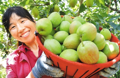 8月8日,新疆铁门关市博古其镇党建扶贫果园内贫困农民在采摘早酥梨准备销往海外市场。徐明生常玉兰摄(人民视觉)