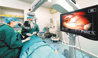 “行知中国”助力关爱西部青少年眼健康。图为兰州普瑞眼科医院医生在手术室为高三学生罗进荣实施眼科手术。新华社记者陈建力摄