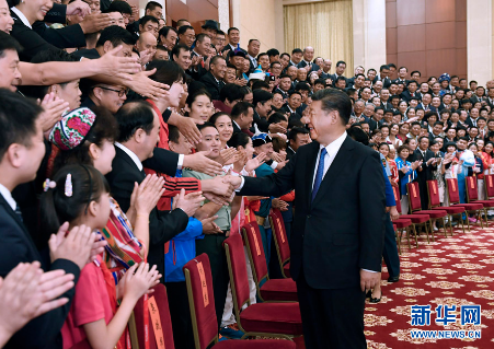 当天上午,天津宾馆会议厅内洋溢着热烈的气氛,参加会见的代表们情绪饱满、精神振奋,有的身穿少数民族盛装,有的胸前佩挂着闪亮的奖牌。11时许,习近平等来到天津宾馆会议厅,全场爆发出雷鸣般的掌声。习近平同参加会见的代表亲切握手,不时交谈并合影留念。
