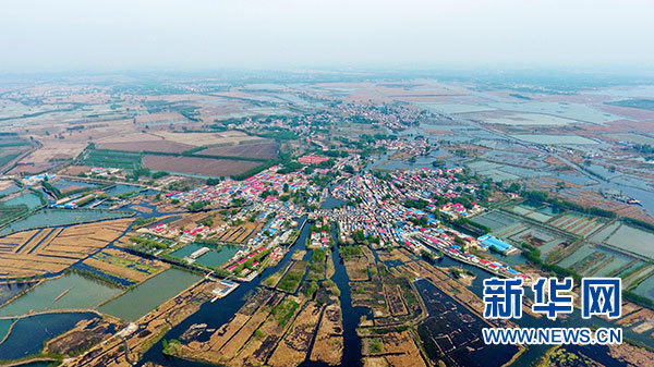 这是河北雄安新区白洋淀内的村庄(4月9日摄)。