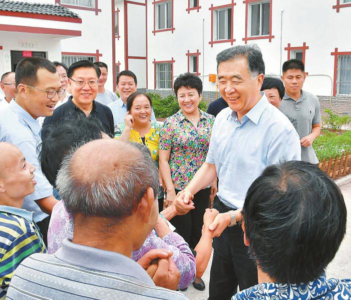 九月十六日,国务院副总理、国务院扶贫开发领导小组组长汪洋在省委书记王东明陪同下,来到渠县渠南乡大山村考察易地扶贫搬迁集中安置点建设和产业脱贫情况,与当地群众亲切交流。本报记者毛漫丁摄