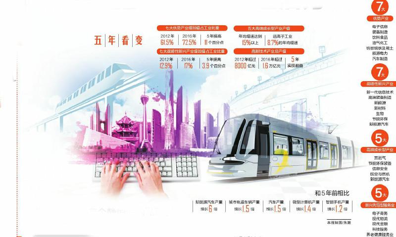 转型才能更好发展,后发也要高点起步。我省积极培育高端现代产业,推动工业转型升级,崛起航空与燃机、信息安全、新能源汽车、轨道交通等一大批新产业,高技术产业比重不断提升。