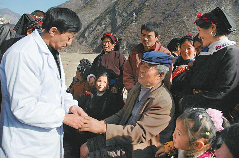阿坝州各县疾控中心派出医务人员,到各乡、镇为患者检查大骨节病并建立病情档案。黄静 摄