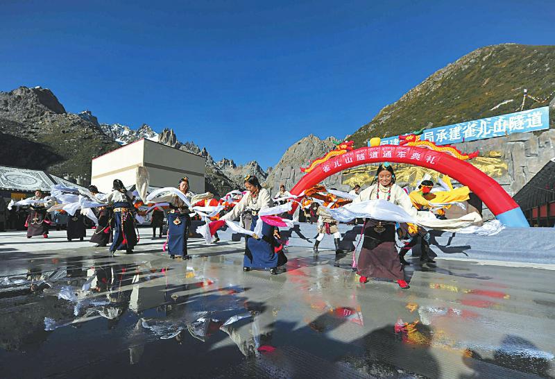 藏族群众载歌载舞庆祝雀儿山隧道通车。本报记者 何海洋 摄