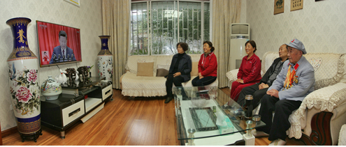 在江西莲花县,开国将军甘祖昌夫人、全国道德模范龚全珍老阿姨和家人、邻居聚在一起,认真地收看了十九大开幕会。“国家越来越富强了,人民生活水平不断提高,越来越幸福了。”说起十九大报告的内容,龚阿姨感觉很满意,同时也表露出对自己的不满意:“享受了国家政策的优惠,但自己的贡献太少了。咱们国家的科技人员有的也七八十岁了,但还是不断在科技领域攀登高峰,为祖国争得了荣誉。所以我感觉自己也要跟上时代,发奋图强。能力有大小,尽自己所能,做点对社会有益的事。每个人有一分热就发一分光,全国前进的步伐就会更快,我们的生活就会一天比一天美好幸福。”