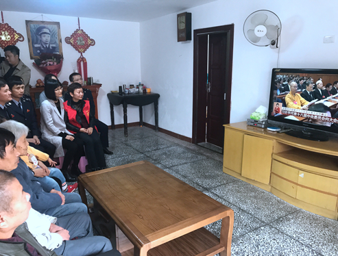 江西省萍乡市莲花县,龚全珍老阿姨在和家人邻居一起收看十九大开幕会。吴菁摄