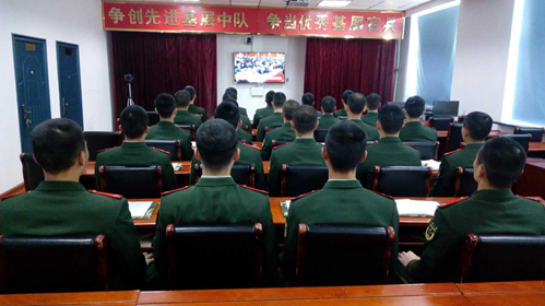 武警长春支队四中队战士观看党的十九大开幕式。王帝元摄