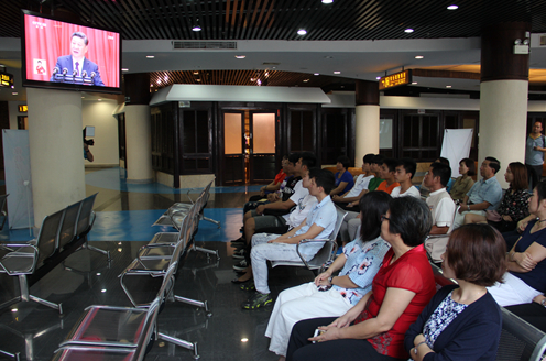 开幕会开始后,工友们聚精会神地围坐在车间LED大屏前,仔细聆听报告内容,不时做着记录。会后,工友们纷纷表示,习近平总书记的报告高瞻远瞩,总揽全局,振奋人心,给予一线员工莫大鼓舞。今后,大家将按照十九大指明的方向,把手上的活干好,把科研项目做好,掌握技术话语权,为决胜全面建成小康社会、实现中国梦而奋斗!
