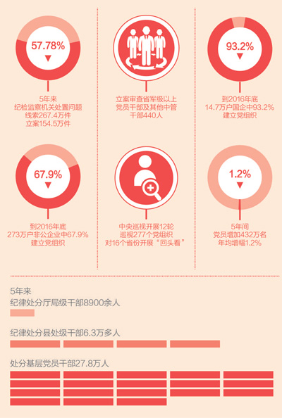 党内政治生活呈现新气象。杨晓渡说,5年来,以习近平同志为核心的党中央,从党的历史使命出发,以“得罪千百人,不负十三亿”的使命担当,兑现了“打铁还需自身硬”的庄严承诺,将全面从严治党作为非常重要的工作,纳入战略布局,把党风廉政建设和反腐败斗争提上新高度。把严肃党内政治生活作为根本性基础工作,层层压实主体责任和监督责任,严明政治纪律和政治规矩,党内政治生活面貌一新,党内政治生态全面净化。