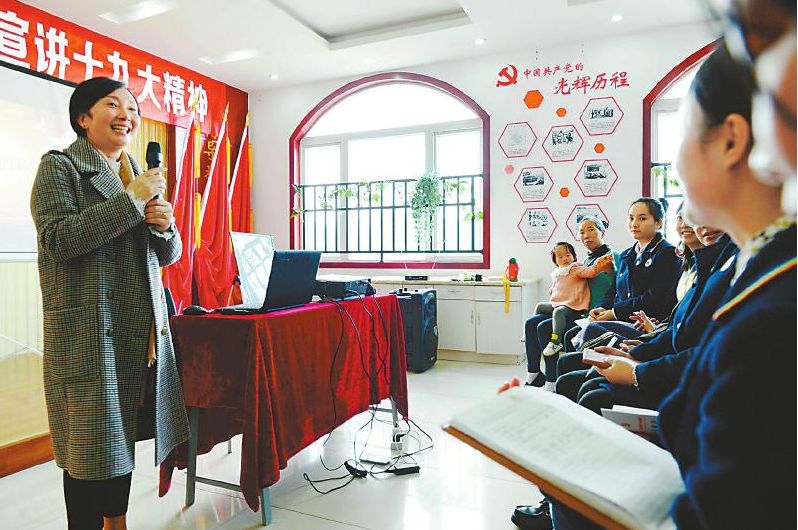 10月26日下午,占地斯门在大邑县晋原街道新乐社区宣讲党的十九大精神