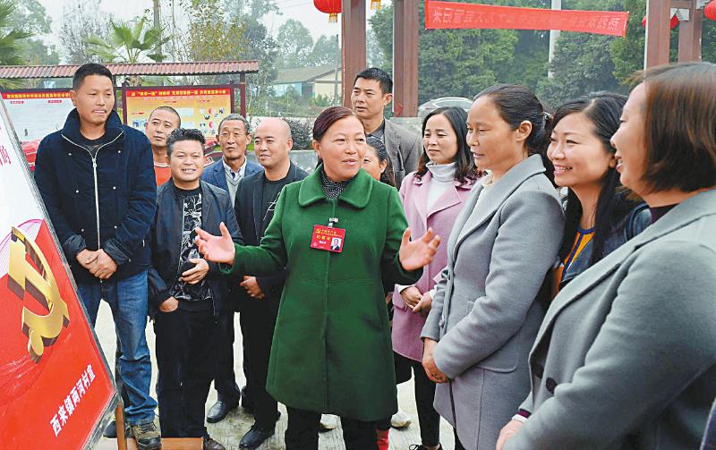 10月27日下午,蒋乙嘉在蓬溪县拱市村宣讲党的十九大精神。杨雪雯摄