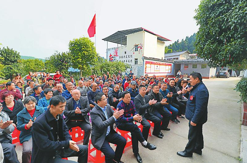 “在人民大会堂聆听十九大报告时,我只能用掌声来表达激动的心情,手都拍痛了。”回村的首场宣讲,从掌声谈起。“十九大报告明确提出了实施‘乡村振兴战略’,这跟村里的好日子息息相关。比如,完善承包地‘三权’分置制度、第二轮土地承包到期后再延长三十年、支持和鼓励农民就业创业,都是令人兴奋的好消息。”