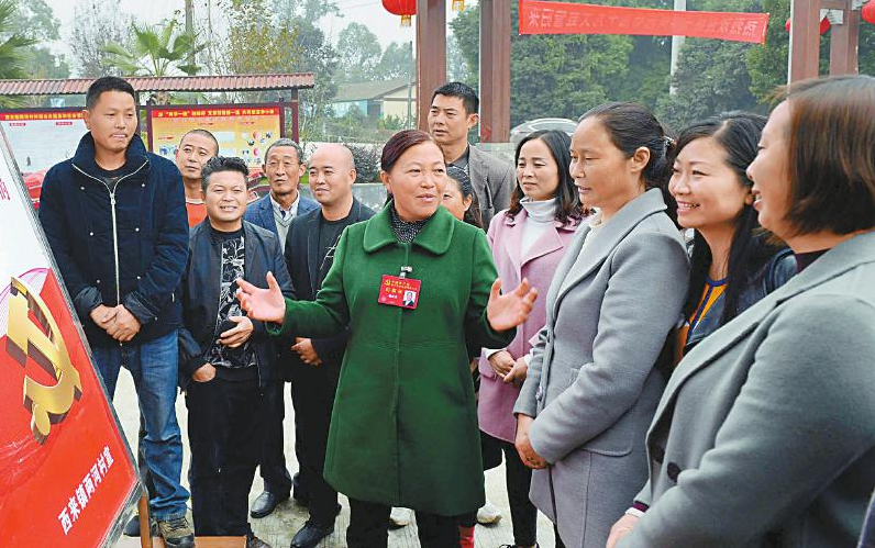 10月27日下午,蒋乙嘉在蓬溪县拱市村宣讲党的十九大精神。杨雪雯摄