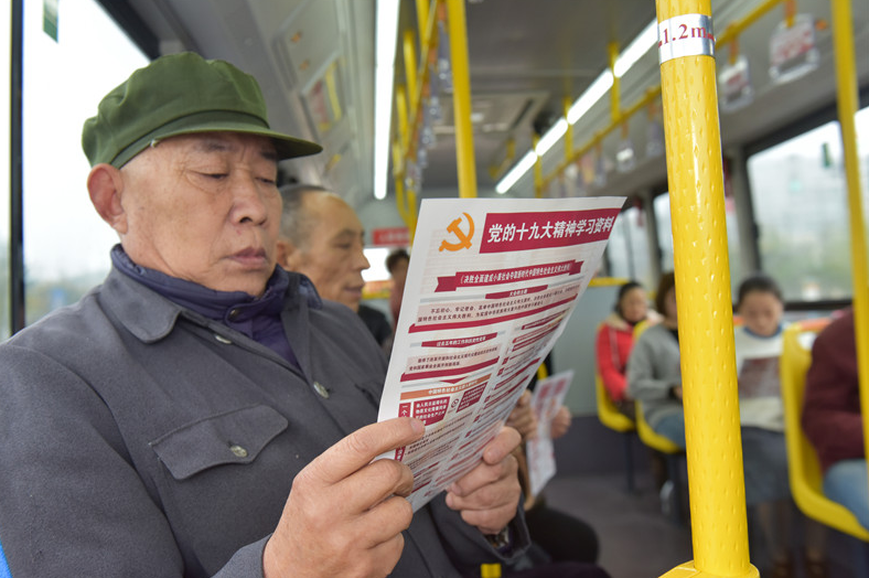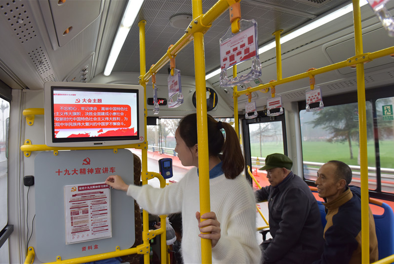 四川新闻网德阳11月1日讯(王平 记者 周鸿)从10月31日开始,绵竹市内电动公交车上比往日多了新的内容,那就是增加了党的十九大会议精神的有关内容。