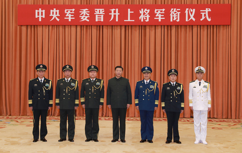 习近平向晋升上将军衔的张升民颁发命令状并表示祝贺