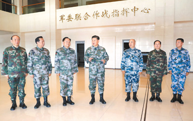 上午9时30分许,习近平一身戎装来到军委联指中心大楼。他带领军委一班人研究军委联指中心建设情况。习近平指出,军队是要准备打仗的,军委必须懂打仗、善谋略、会指挥,军委工作一开始就要把备战打仗的指挥棒立起来。今天到军委联指中心来,就是要亮明态度,从我做起,从军委做起,强化备战打仗导向,提高打赢本领,抓实备战工作,带领我军真正做到能打仗、打胜仗,担当起党和人民赋予的新时代使命任务。