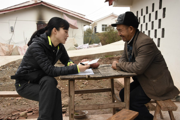 帮扶人员正在了解村民家的困难事。(大英县公安局供图)