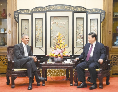 11月29日,国家主席习近平在北京钓鱼台国宾馆会见美国前总统奥巴马。新华社记者 李学仁摄