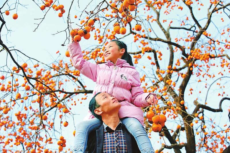 图为近日,大朝乡牛头村第二届柿子节采摘现场。