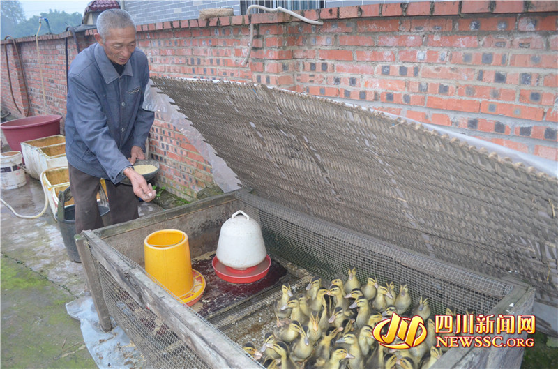 刘德怀精心照料幼鸭