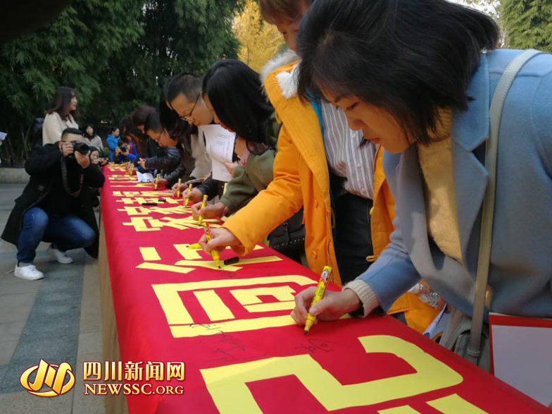 参观完法纪教育基地后,驻部纪检组领导、家属代表和纪检干部依次在长达20米的红色巨型签字条幅上郑重地签下了自己的名字,以示“天天学纪、与纪同行、家家幸福、人人平安”的意识和决心,纷纷表示,要以《天天学纪知识手册》为载体,筑牢拒腐防变的思想道德防线,切实增强自身的服务意识和责任意识,争当严守纪律的表率。据悉,该签名条幅将在全省宣传文化系统传递,数万名党员干部都将在上面写下自己的名字,表明学纪守纪的决心和承诺。廉政签名条幅将送交省纪委作为廉政教育资料永久保存,事事提醒、时时提醒、处处提醒党员干部算好廉政账,把好廉洁关。