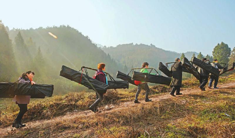新年伊始,南江县团结乡回龙村“暖意融融”。近日,“扁担学校”的义务宣传队队员们用扁担挑起宣传展板、演出道具,徒步走进该村,用群众喜闻乐见的快板书、三句半、方言小品等形式,宣传党的十九大精神。