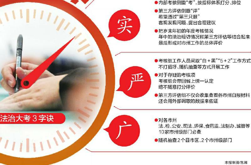 “内部考核+外部评估”,这是近期省依法治省领导小组办公室对各地推进依法治理情况组织的一场“大考”。