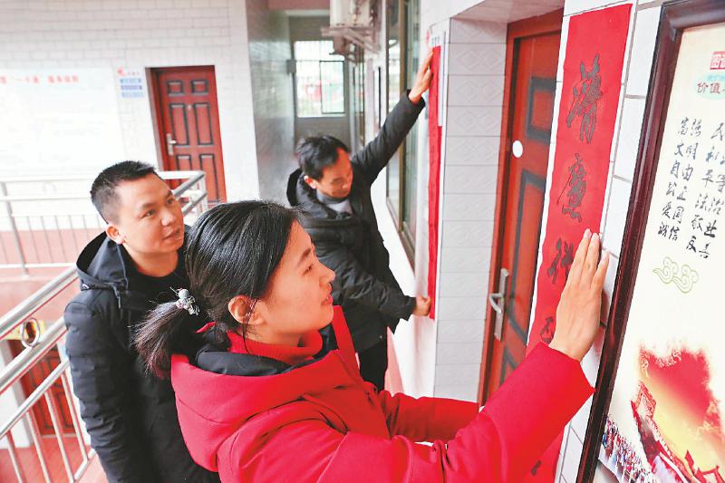 近日,泸州市纳溪区的纪检监察干部正在给安富村的一村干部家贴﹃廉春联﹄。刘传福摄(视觉四川)