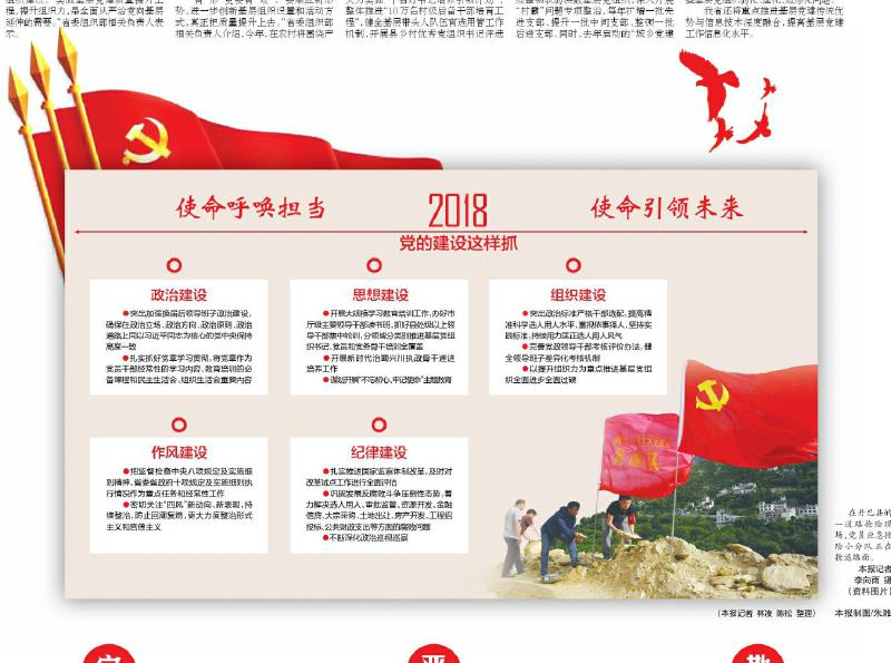 为提升支部建设质量,今年我省还将推进各领域党支部标准化、规范化建设,深化开展“三分类三升级”活动,持续整顿软弱涣散基层党组织,深入开展“村霸”问题专项整治,每年扩增一批先进支部、提升一批中间支部、整顿一批后进支部。同时,去年启动的“城乡党建结对共建”行动也将持续推进。