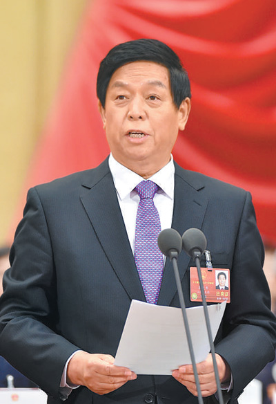 3月5日,第十三届全国人民代表大会第一次会议在北京人民大会堂开幕。栗战书主持会议。本报记者 李 舸摄