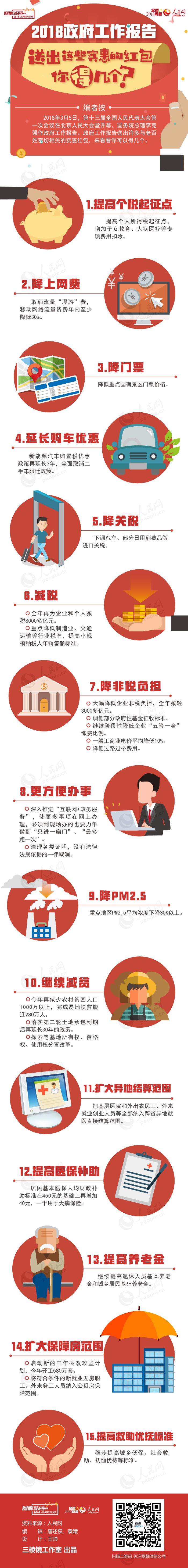 2018政府工作报告送出这些实惠的红包,你得几个?