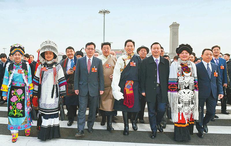 全国人大代表、马边彝族自治县花间刺绣专业合作社刺绣工乔进双梅快走几步,赶上吉克石乌。“非常振奋,关键要撸起袖子加油干。”两位彝族代表分享着心得。