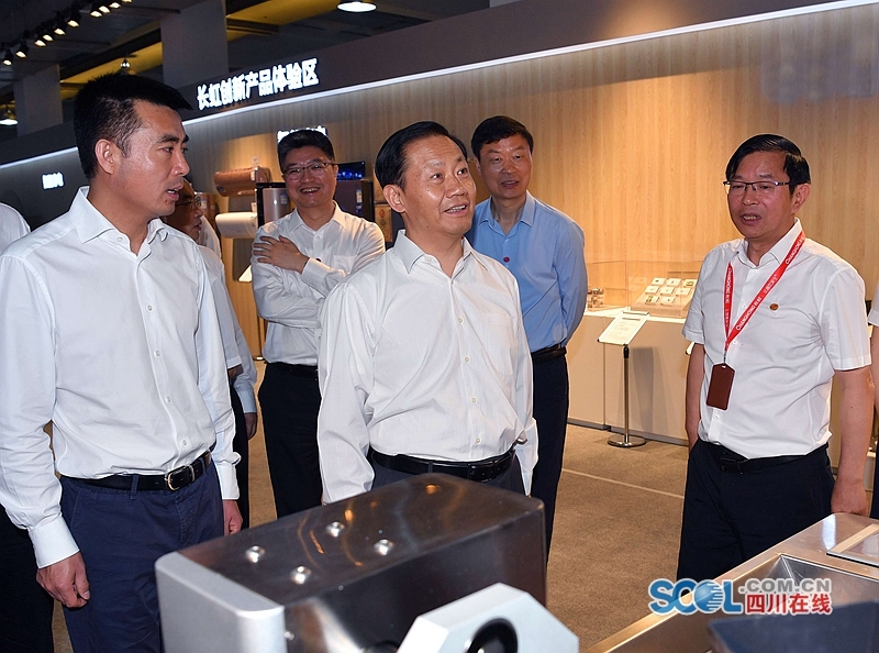 在长虹集团多媒体产业公司、九洲集团创新展示中心,彭清华走进工厂车间,察看企业生产线和智能科技产品,了解企业深化改革、结构调整、技术研发等情况,鼓励企业抢抓全面创新改革试验和军民融合深度发展等重大机遇,准确把握产业转型、市场变化、消费升级的趋势,加快关键核心技术联合攻关和成果转化应用,大力推动技术创新、产品创新、业态创新、管理创新、服务创新,为振兴民族工业、做强四川品牌贡献更多力量。
