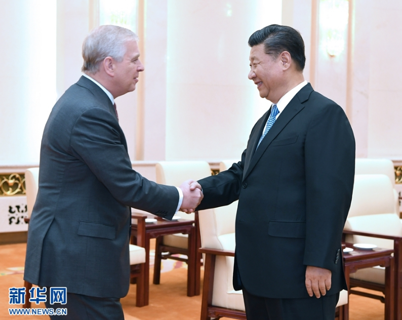 5月29日,国家主席习近平在北京人民大会堂会见英国约克公爵安德鲁王子。 新华社记者 饶爱民 摄