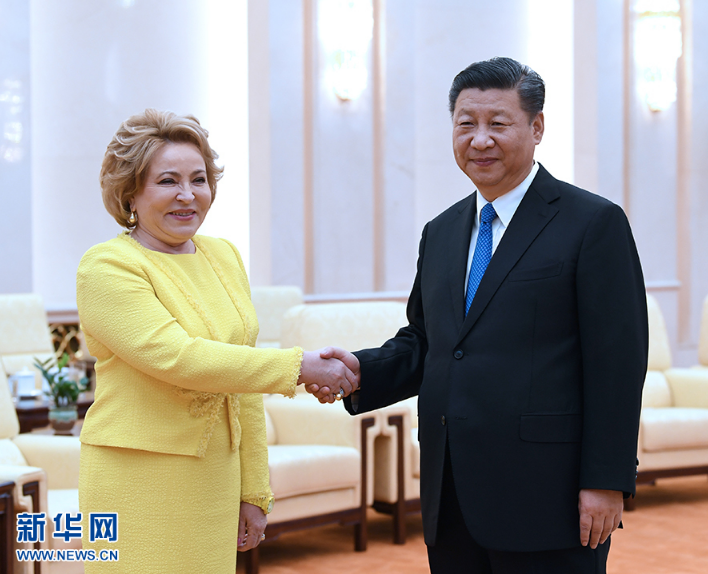 7月4日,国家主席习近平在北京人民大会堂会见俄罗斯联邦委员会主席马特维延科。 新华社记者饶爱民摄