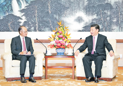 国家主席习近平16日在钓鱼台国宾馆会见世界银行行长金墉。
