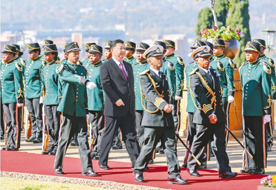 会谈前,拉马福萨为习近平举行隆重欢迎仪式。