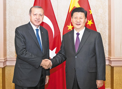 埃尔多安表示,土中关系发展令人满意。土耳其愿同中国密切高层交往,深化经贸、投资、基础设施建设、反恐安全等领域合作,这有利于区域发展和稳定。土方支持共建“一带一路”合作,反对保护主义,支持自由贸易,愿密切同中方在国际事务中沟通和协调。