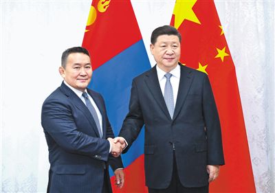 习近平指出,中方始终高度重视中蒙关系,将按照亲诚惠容理念和与邻为善、以邻为伴方针,同蒙方加强交流合作,不断推动中蒙全面战略伙伴关系更好更快发展。双方要加强对两国关系的政治引领,从战略高度和长远角度把握好两国关系发展正确方向。要相互理解和尊重彼此核心利益,深化彼此互信。中方尊重蒙古国独立、主权、领土完整,尊重蒙古国人民自主选择的发展道路。双方要继续大力推动“一带一路”同“发展之路”对接,发挥好大项目对两国务实合作的带动和引领作用,积极支持两国边境毗邻地区扩大交流合作。中方欢迎蒙方搭乘中国发展快车,分享中国改革开放成果,实现自身高质量发展。中方也支持蒙古国发展畜牧业和加工业,从蒙古国进口更多优质农牧产品。双方要促进人文交流,夯实两国关系的民意和社会基础。双方要加强在国际和地区事务中的沟通协调,协力推进区域合作。