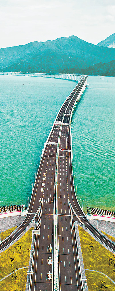港珠澳大桥香港段由东端的香港口岸人工岛和向西连接大桥主体的12公里香港接线组成,是这一超级跨海通道的重要组成部分。图为港珠澳大桥香港段(10月13日摄)。新华社记者 吕小炜摄