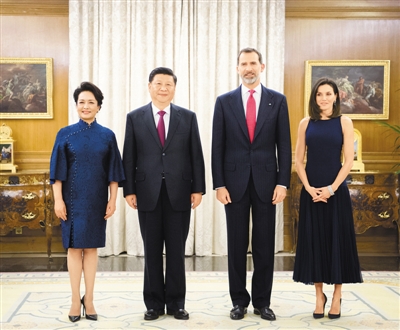 习近平表示,很高兴应费利佩六世国王邀请到访美丽的西班牙。2005年中西建立全面战略伙伴关系以来,两国关系水平不断提升,政治互信日益增强,合作领域不断拓展,民间交往更加密切。中西关系正处在历史最好时期。我对中西关系发展前景充满信心。这次访问西班牙是我连任中国国家主席后首次访问欧洲,也是这次欧洲拉美之行第一站,希望通过此访巩固两国友谊,提升合作水平,使中西关系行稳致远。