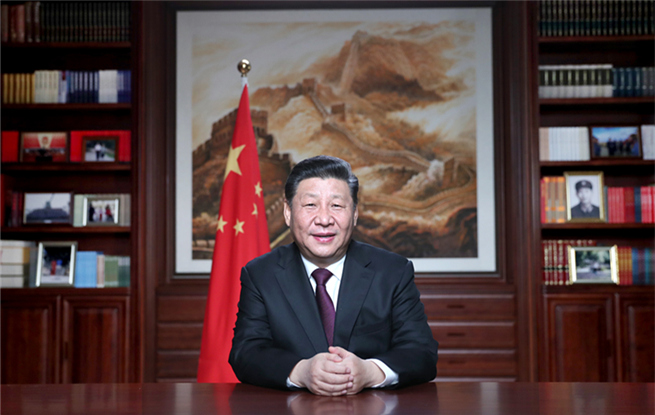 新年前夕,国家主席习近平通过中央广播电视总台和互联网,发表二〇一九年新年贺词。新华社记者 鞠 鹏摄