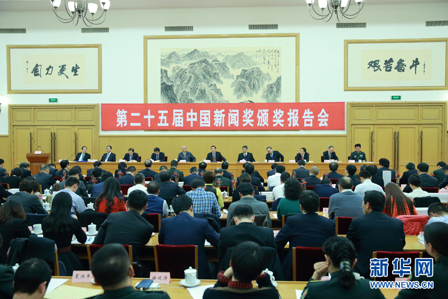 11月8日,第二十五届中国新闻奖颁奖报告会在北京举行。中共中央政治局委员、中宣部部长刘奇葆出席报告会并讲话。 新华社记者丁海涛摄