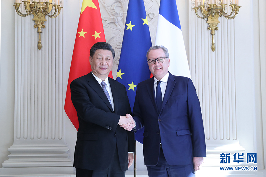 3月26日,国家主席习近平在巴黎会见法国国民议会议长费朗。 新华社记者 鞠鹏 摄