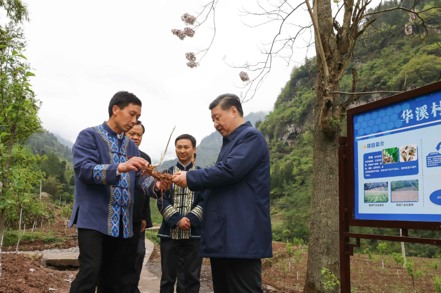 4月15日,习近平总书记赴重庆考察调研。一下飞机,他就转乘火车、汽车前往石柱土家族自治县中益乡小学、华溪村,深入农户家中和田间地头,实地了解脱贫攻坚工作进展和解决“两不愁三保障”突出问题情况。(杜尚泽)