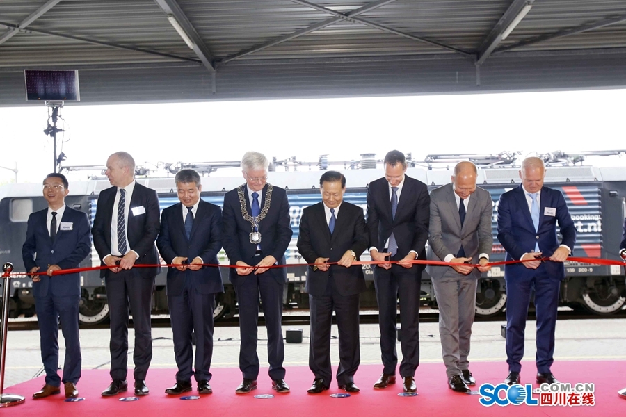 当地时间5月21日上午,彭清华在荷兰北布拉邦省蒂尔堡市中欧班列蒂尔堡场站,出席中欧班列蒂尔堡—成都发车暨跨大西洋海运与中欧班列(成都)联运合作备忘录签署仪式。