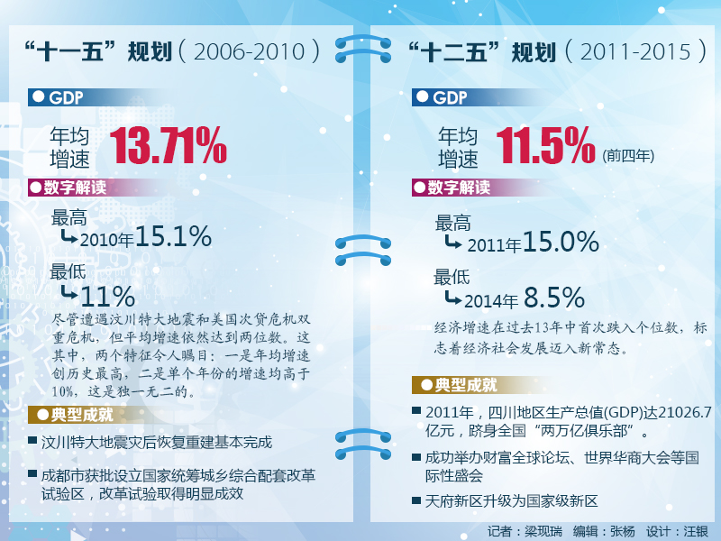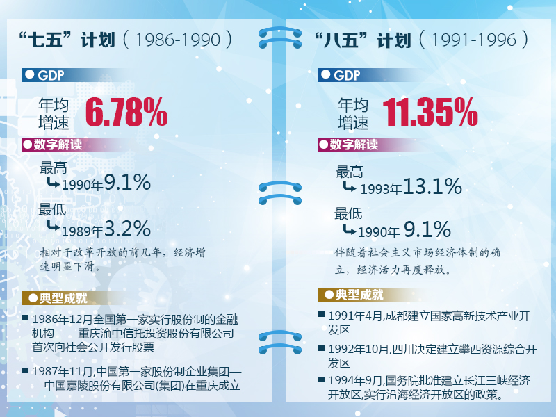 从总量来看,全省GDP从最初的几十亿元到2.8万亿元,这分明就是一段从低谷迈向高峰的征程。再看GDP增速的曲线图,从最高点的17.4%到最低点-22%,在时空的坐标中,它演化为一条跌宕起伏的大河。 曲线无论如何变化,背后的规律表露无遗:每一次改革开放都伴随着生产力的大幅度解放,都伴随着经济的快速增长。无论风云如何变幻,四川经济始终和中国一起,坚定前行。
