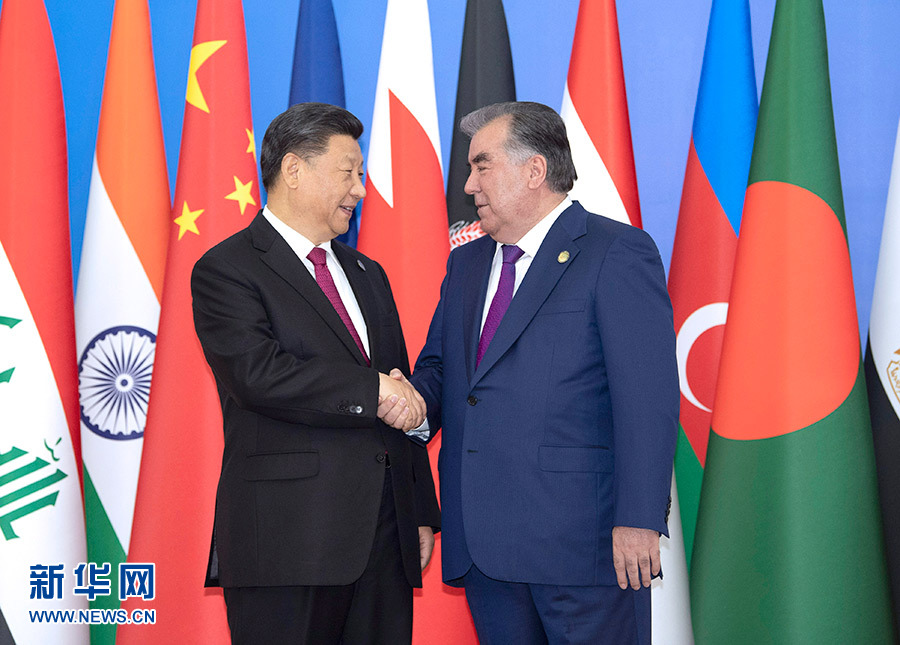 6月15日,亚洲相互协作与信任措施会议第五次峰会在塔吉克斯坦首都杜尚别举行。国家主席习近平出席峰会并发表题为《携手开创亚洲安全和发展新局面》的重要讲话。 新华社记者 谢环驰 摄