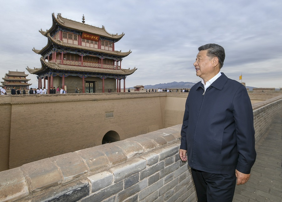 习近平总书记考察嘉峪关关城 登城楼观风貌